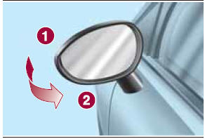 W razie potrzeby (na przykład, gdy kształty lusterka utrudniają przejazd wąską drogą), lusterka można złożyć, przesuwając z pozycji 1 rys. 21 otwarcia w pozycję 2 zamknięcia.
