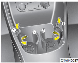 Aby korzystać z uchwytu na kubki, należy nacisnąć przycisk (1).