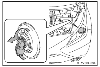 Obrócić kierownicę w lewo, jeżeli wymieniana jest żarówka z prawej strony lub obrócić kierownicę w prawo, jeżeli wymieniana jest żarówka z lewej strony.